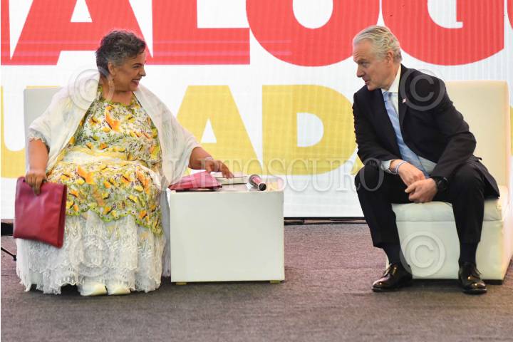 Beatriz Paredes, y Santiago Creel, durante el primer foro "Diálogos Ciudadanos" del Frente Amplio por México.