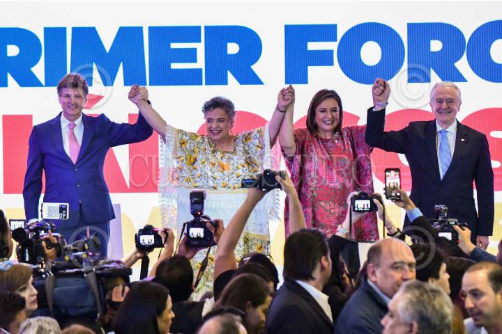 Los finalistas para ser el candidato del Frente Amplio por México para el proceso electoral de 2024: Xóchilt Gálvez; Santiago Creel; Beatriz Paredes y Enrique de la Madrid, participación en el primer foro "Diálogos Ciudadanos", en el que expusieron sus proyectos en materia de gobierno federal.