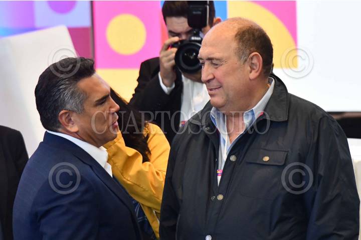 Alejandro Moreno, dirigente nacional del PRI, y Rubén Moreira, diputado del PRI, durante el primer foro "Diálogos Ciudadanos" del Frente Amplio por México.