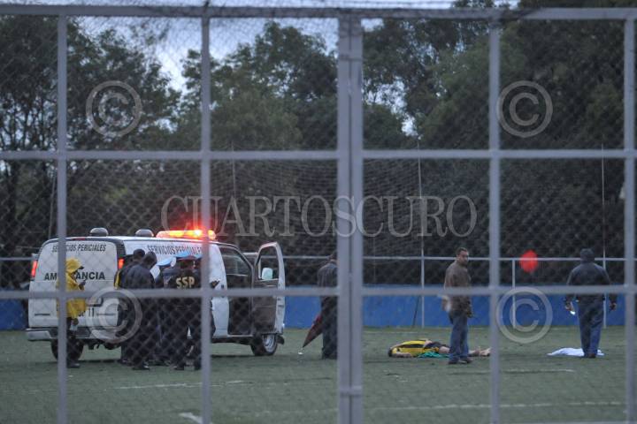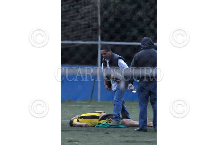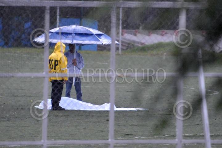 MÉXICO, D.F., 21AGOSTO2010.- Un sujeto de nombre Alfonso Godinez Islas de 40 años pierde la vida al caerle un rayo cuando jugaba fútbol para el equipo "Chicos Malos" en una de las canchas del deportivo Vivanco ubicado en las calles Moneda y Vivanco de la colonia Tlalpan Centro, perímetro de la misma Delegación. FOTO: LUIS CARBAYO/CUARTOSCURO.COM