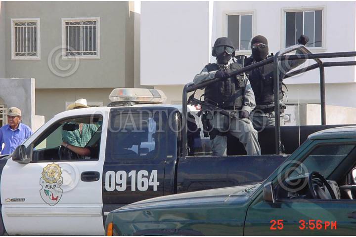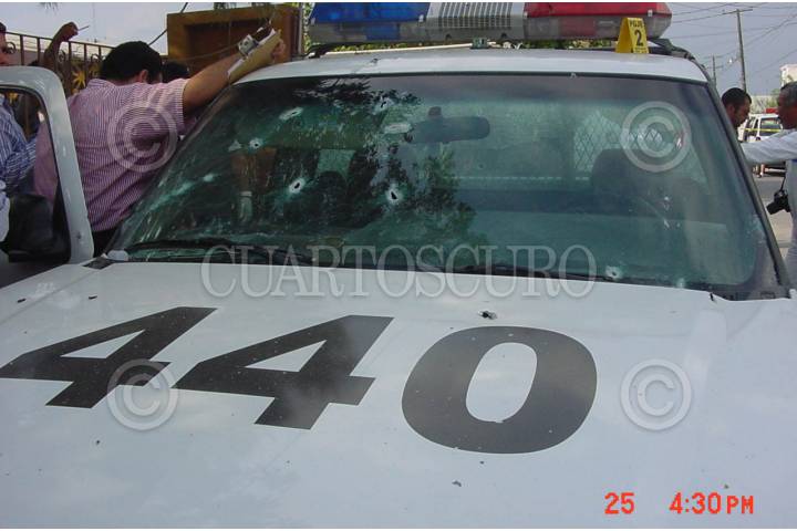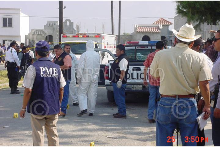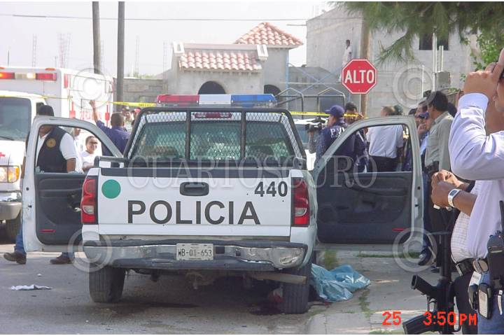 NUEVO,LAREDO.26ABRIL2006.- Jesús Cruz Lopez oficial preventivo fue abatido a balazos por desconocidos cuando custodiaba la casa de un jefe policiaco en la colonia del Issste en esta ciudad fronteriza y en los mismos actos violentos resultó gravemente herido el comandante Juan Flores Quiroga en hechos que son materia de investigación de las autoridades que hasta el momento continúan con las investigaciones. Foto: Rene Martìnez/CUARTOSCURO.COM