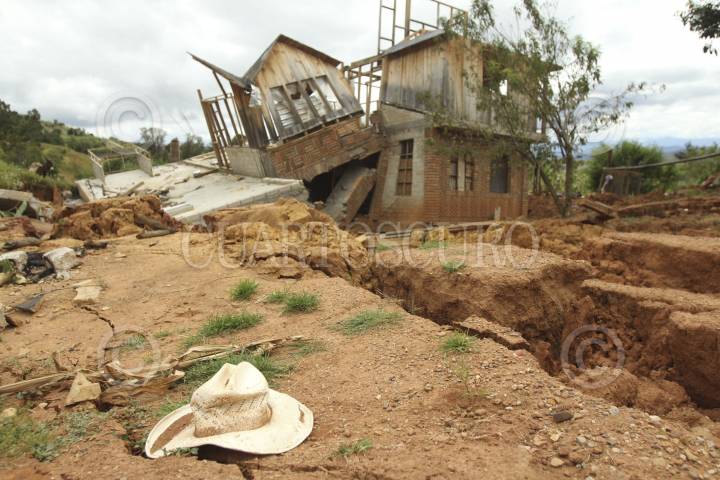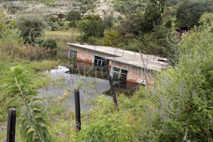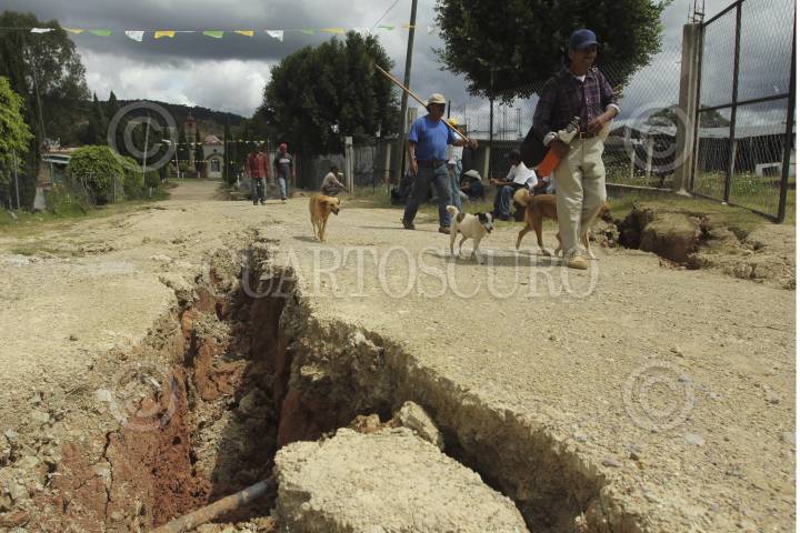 ASUNSIÓN NOCHIXTLAN, OAXACA, 06OCTUBRE2011.- La agencia municipal de Santiago Mitlatongo continúa en el abandono total, esto a un mes que se registró desplazamiento y hundimiento de tierra. Al interior de la población se han formado alrededor de ocho lagunas. Las grietas en las calles han incrementado su tamaño considerablemente. Las autoridades aún no han determinado la causa de dicho fenómeno natural, mientras tanto los pobladores continúan habitando en albergues temporales.. FOTO: JORGE A. PEREZ ALFONSO/CUARTOSCURO.COM