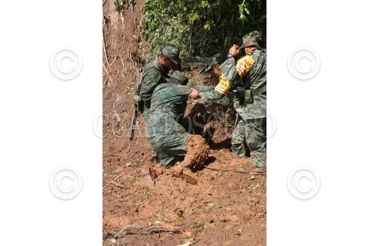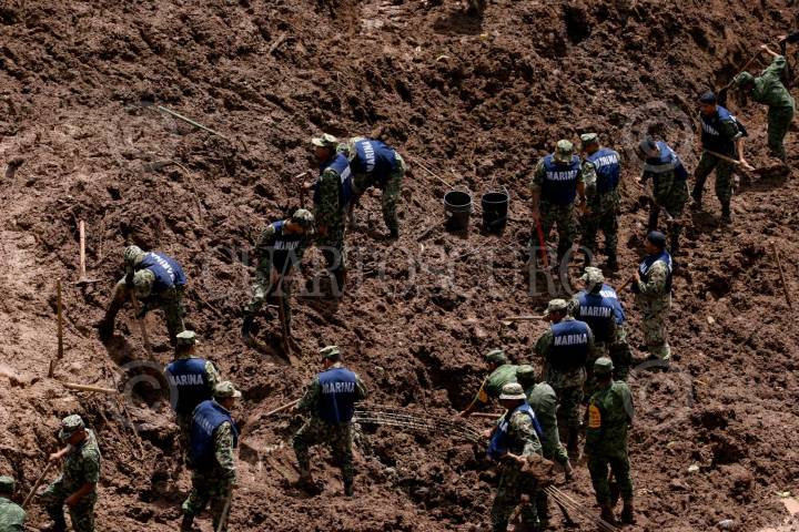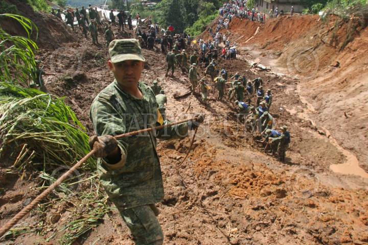 SANTA MARIA TLAHUITOLTELPEC, OAXACA, 29SEPTIEMBRE2010.- Centenares de habitantes del municipio de Santa Maria Tlahuitoltepec junto con elementos de la SEDENA, SEMAR, seguridad pública de Oaxaca, y elementos de protección civil, trabajan buscando los cuerpos de personas que fueron sepultadas por un alud que devastó viviendas debido al reblandecimiento de la tierra. FOTO: SAÚL LÓPEZ/CUARTOSCURO.COM