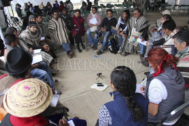 TLAHUITOLTEPEC, OAXACA, 09OCTUBRE2013.- Tercer día de trabajos de la II Cumbre Continental de Comunicación Indígena, poco más de mil 500 integrantes de pueblos originarios de todo el continente llegaron hasta este poblado mixe, incrustado en la sierra norte de Oaxaca para intercambiar las experiencias adquiridas en las últimas décadas en aspectos de comunicación. En el curso de las primeras pláticas, la mayor parte de ellos revelaron que además de los problemas atávicos de racismo, segregación, olvido, pobreza y clasismo, ahora son sujetos de saqueo de grandes trasnacionales que quieren las riquezas que les pertenecen. FOTO: JUAN JOSE ESTRADA SERAFIN /CUARTOSCURO.COM