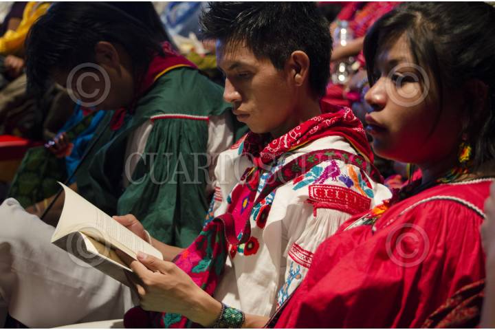 MÉXICO, D.F., 21MAYO2015.- El Laboratorio de Ciudadanía Digital presentó la aplicación para dispositivos móviles "Vamos a aprender mixteco", cuya investigación estuvo a cargo del originario de Oaxaca, Donato García. La aplicación está basada en el libro homónimo, de autoría del nativo habitante del Ñuu Davi, publicado en 2013 como uno de los trabajos de la "Convocatoria 2013 de Proyectos de comunicación indígena de la CDI. El objetivo de la aplicación es enseñarle a los niños de las comunidades mixtecas porque esta lengua está cayendo en desuso. FOTO: MARÍA JOSÉ MARTÍNEZ /CUARTOSCURO.COM