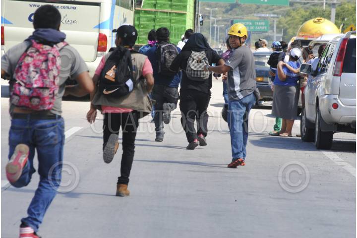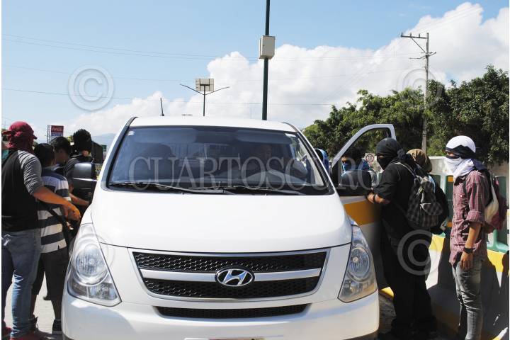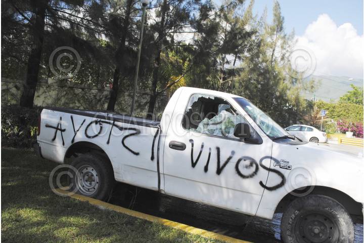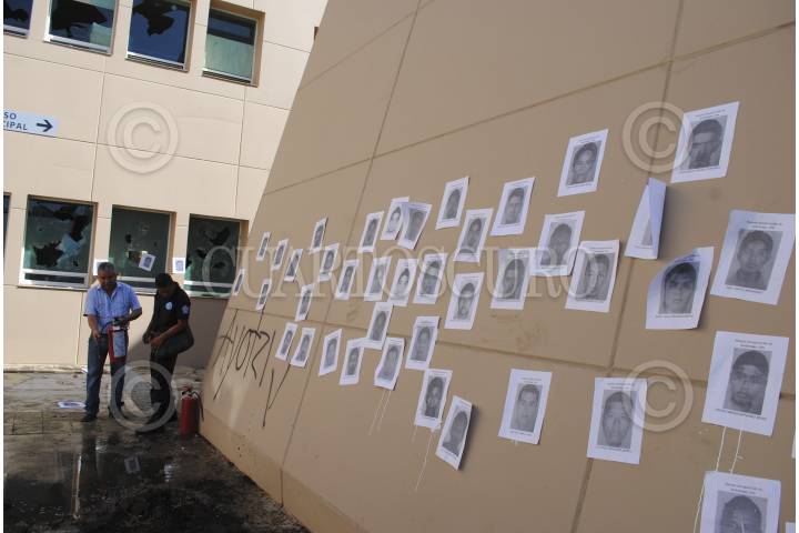 CHILPANCINGO, GUERRERO, 21SEPTIMBRE2015.- Padres de familia y normalistas destruyeron mobiliario de la Fiscalía General del estado, quemaron algunos documentos en la caseta de vigilancia de la dependencia y posteriormente se dirigieron al norte de la ciudad. Los padres de familia solicitaron cooperación voluntaria de los automovilistas; los normalistas retuvieron automoviles oficiales en el punto conocido como Tierras Prietas, exigiendo la presentación con vida de los 43 estudiantes desaparecidos en Iguala. FOTO: JOSÉ I. HERNÁNDEZ /CUARTOSCURO.COM
