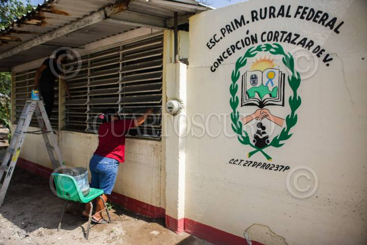 Padres de familia de la Escuela Primara Rural Federal Concepción Cortazar, en Tabasco, llevaron a cabo una jornada de limpieza a unos días del regreso a clases presenciales.