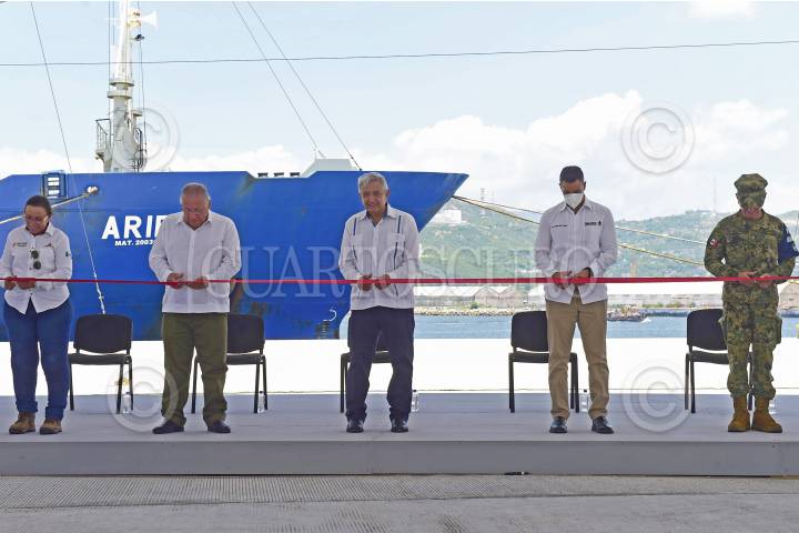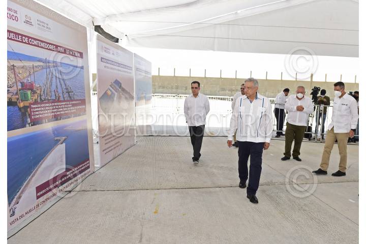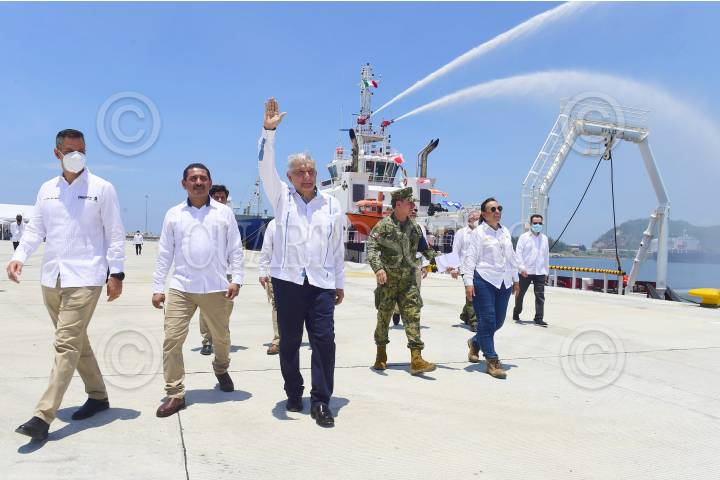 El Jefe del Ejecutivo, Andrés Manuel López Obrador, encabezó la supervisión de obra de la Modernización del Puerto de Coatzacoalcos.