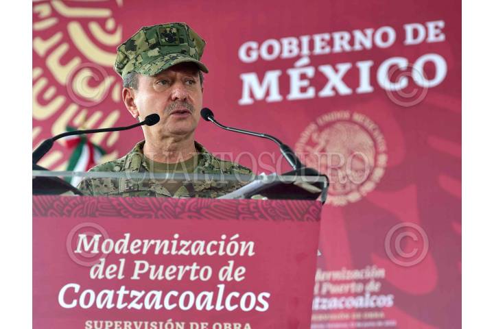 Rafael Ojeda Durán, secretario de Marina, durante la supervisión de obra de la Modernización del Puerto de Coatzacoalcos.