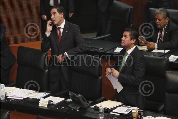 CIUDAD DE MÉXICO, 05JULIO2016.- Senadores del Partido Verde emiten su votación durante el segundo periodo extraordinario de sesión de la LXIII legislatura en el Senado de la República. La mayoría del pleno voto a favor por la propuesta del del presidente Enrique Peña Nieto para quitar de la ley 3de3 la obligación de particulares de presentar declaraciones patrimonial y de interés. FOTO: DIEGO SIMÓN SÁNCHEZ /CUARTOSCURO.COM