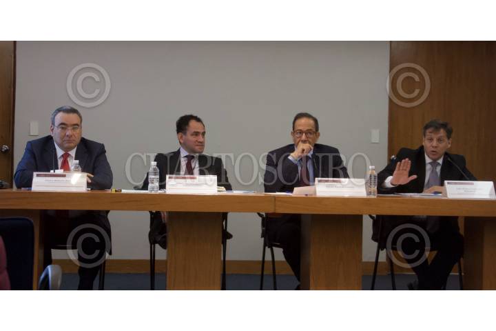 CIUDAD DE MÉXICO, 10OCTUBRE2019.- Carlos Romero, Arturo Herrera, Carlos Salasar y Luis Arturo Castañeda, durante la conferencia de prensa En donde se abordaron temas como las modificaciones para castigar las evasiones fiscales y los sellos digitales. FOTO: ROGELIO MORALES /CUARTOSCURO.COM