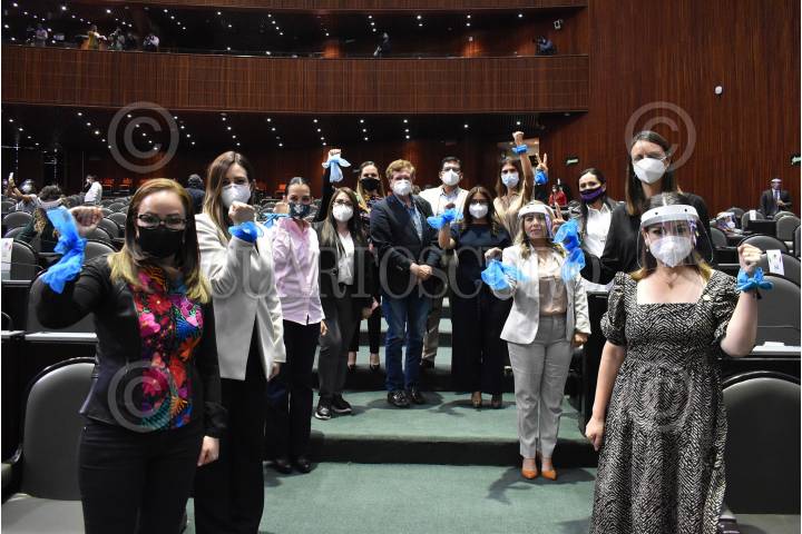 Un grupo de diputadas del PAN mostraron un pañuelo azul en rechazo a la aprobación de una ley que despenalizaría el aborto en Veracruz.