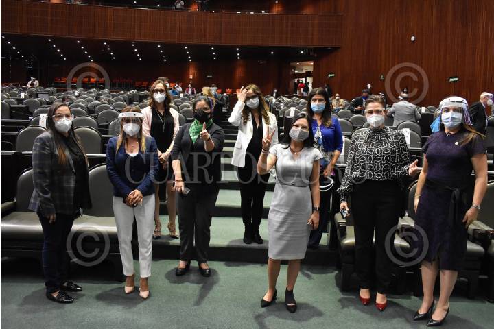 La presidenta de la mesa directiva Laura Rojas posa con otras legisladores, todas luciendo cubrebocas.