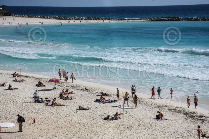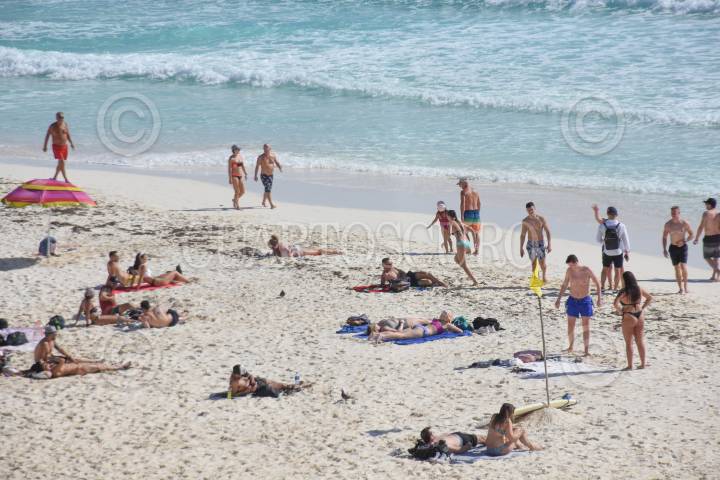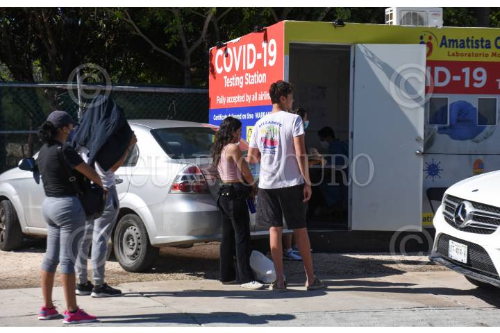 En playas de Cancún se observan diversos módulos para detectar el Covid-19. Debido a la afluencia de turistas nacionales y extranjeros, Quintana Roo se encuentra entre los estados con mayor incremento de casos de Coronavirus.