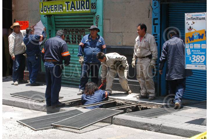 MEXICO, D.F., 02JULIO2010.- Se registro un incendio en un transformador subterráneo conocido como mofa en la esquina de las calles de Brasil y Donceles en el Centro Histórico en donde elementos del Heroico Cuerpo de Bomberos acudieron para apagarlas. FOTO: CUARTOSCURO.COM