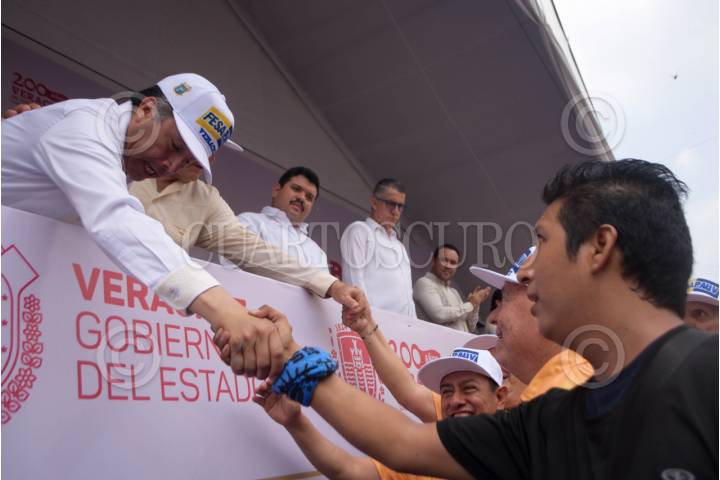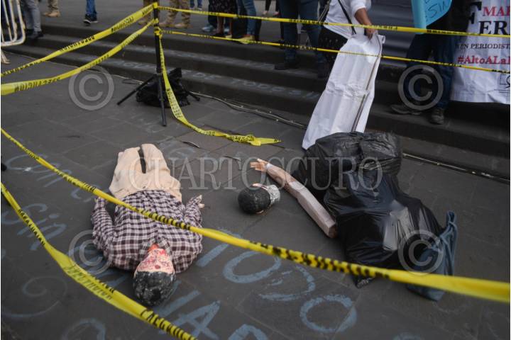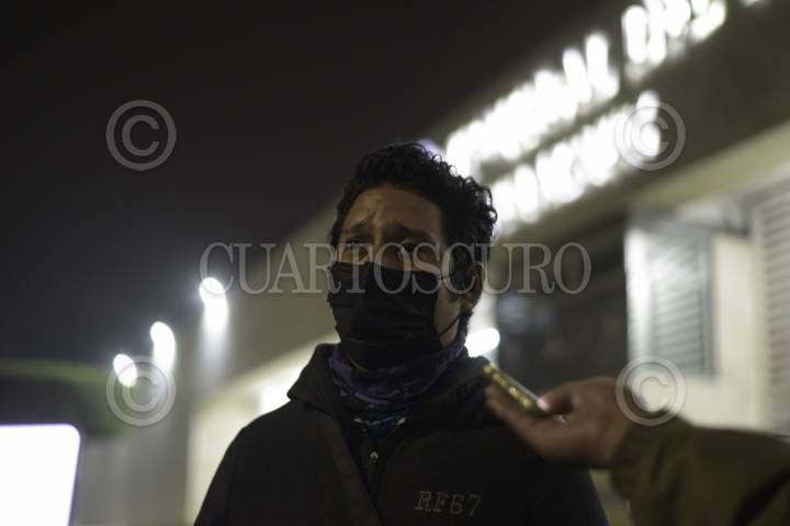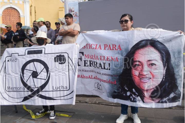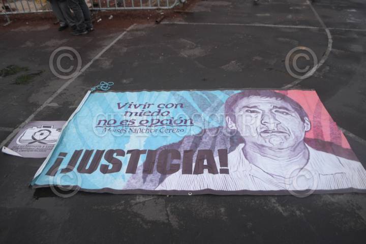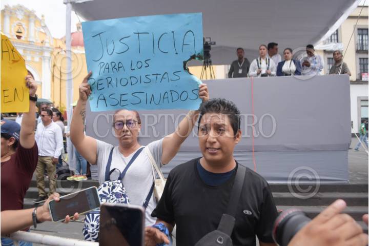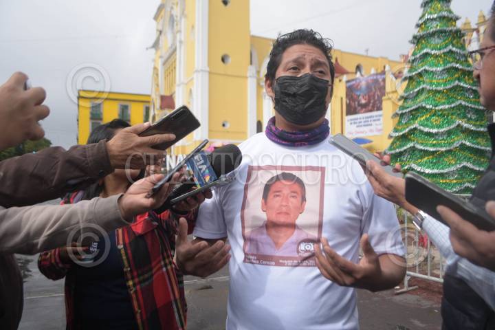 XALAPA, VERACRUZ, 01MAYO2024.- Los familiares de periodistas asesinados se plantaron en la Plaza Lerdo, frente al gobernador de Veracruz, Cuitláhuac García, para protestar por el poco avance que hay en esos sus casos, esto durante la marcha del Día del Trabajo. Personal de gobierno los hostigo para que se retirarán. Jorge, hijo de periodista asesinado Moisés Sánchez, confrontó al mandatario y le pidió que los atendiera. FOTO: YERANIA ROLÓN/CUARTOSCURO.COM