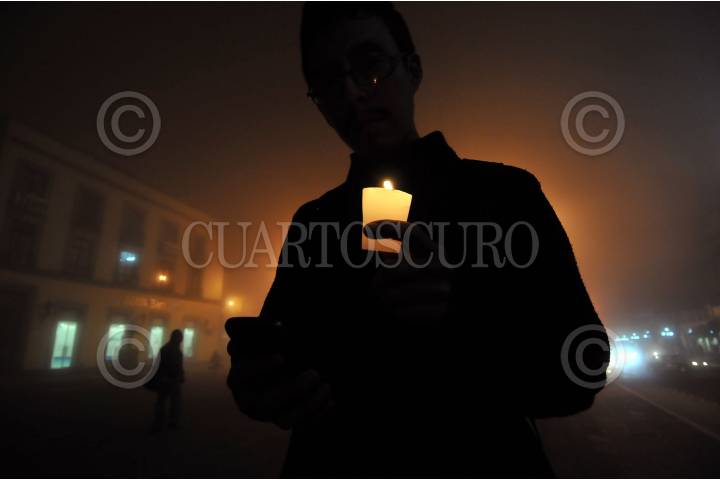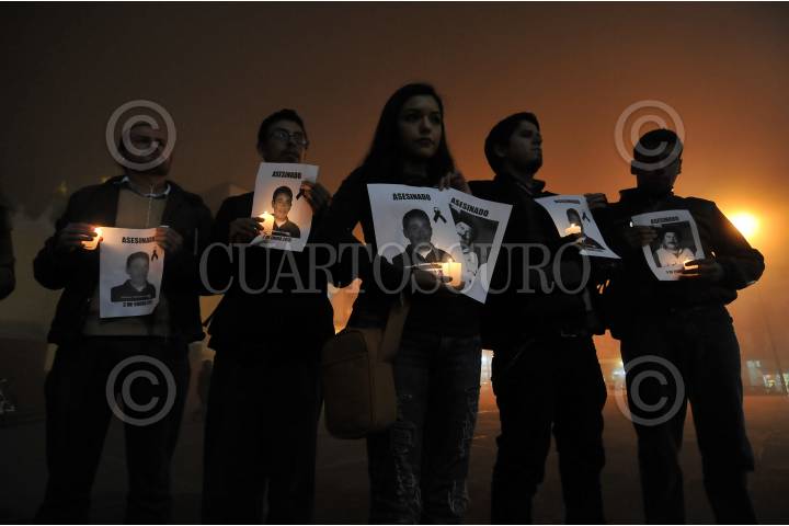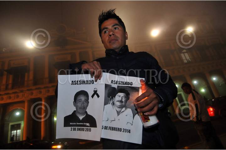 XALAPA, VERACRUZ, 06ENERO15.- Periodistas de Xalapa de congregaron en la Plaza Lerdo en donde encendieron veladoras por el asesinato del editor de periódico "La Unión" Moisés Sánchez Cerezo y en conmemoración del primer aniversario de la muerte del reportero Gregorio Jiménez. FOTO: RUBÉN ESPINOSA /CUARTOSCURO.COM