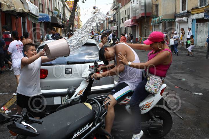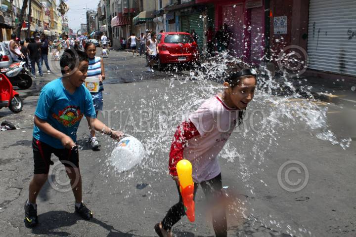 MÉXICO, D.F., 23ABRIL2011.- Niños, jóvenes y adultos se mojaron en la calle de Colombia en el Centro Histórico como parte de la celebración del Sábado de Gloria y en donde pasaron por alto la recomendaciones de abstenerse de desperdiciar el vital liquido. FOTO: RODOLFO ANGULO/CUARTOSCURO.COM