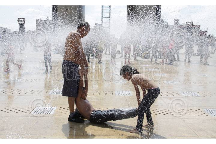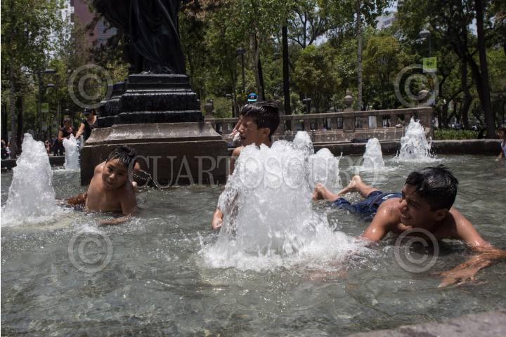 CIUDAD DE MÉXICO, 10JUNIO2018.- Niños se mojan en las fuentes de Alameda Central para refrescarse ante las altas temperaturas que se han estado registrando en la capital. FOTO: TERCERO DÍAZ /CUARTOSCURO.COM