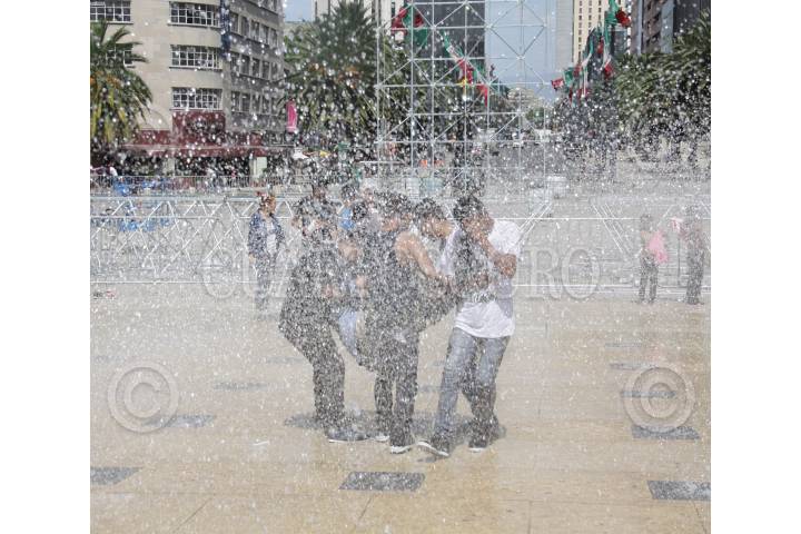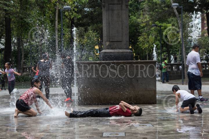 CIUDAD DE MÉXICO 07MAYO2016.- Jóvenes y niños, se moján en la explana del Monumento ala Revolución devido a las altas temperaturas que se han registrado estos ultimos dias FOTO:ANTONIO CRUZ/ CUARTOSCURO.COM