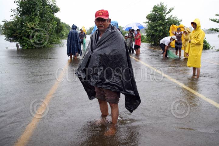 CARDENAS, TABASCO, 05NOVIEMBRE2009.- Por cuarto día consecutivo las severas lluvias azotan en territorio choco por el paso del fenomeno meteorológico que se estancan para provocar desastres de inundaciones; ahora causa daños en los municipios de Huimanguillo, Paraiso y la capital del estado. En la imagen, al menos un millar de pobladores de distintas localidades siguen incomunicados y otros esperan la ayuda sobre tramos carreteros incomunicados del gobierno que encabeza el gobernador Andrés Granier Melo. FOTO: MARCO POLO GUZMAN HERNANDEZ/CUARTOSCURO.COM