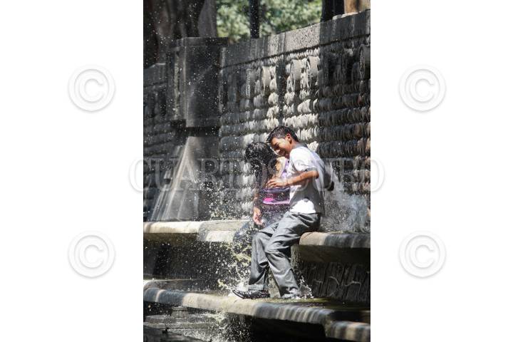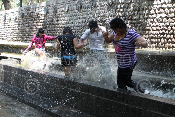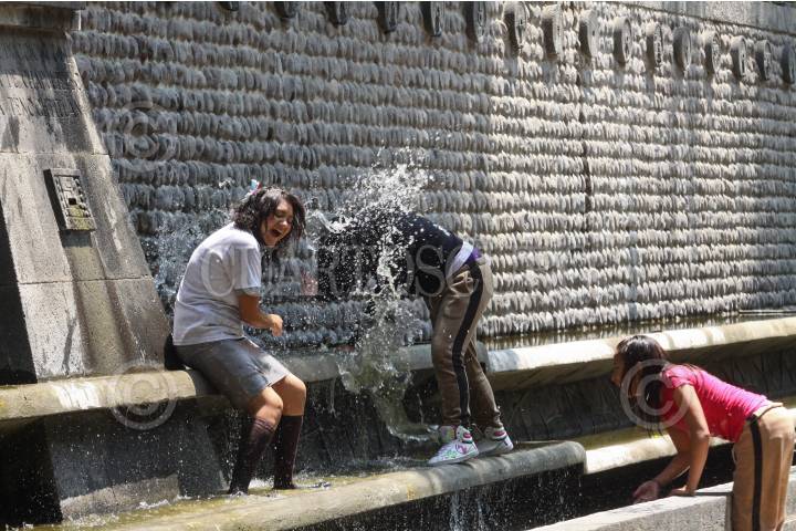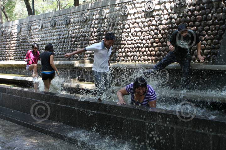 MÉXICO, D.F., 15ABRIL2011.- Debido a las altas temperaturas que se registran en la ciudad, jóvenes de secundaria se mojan en una fuente en el Bosque de Chapultepec. FOTO: RODOLFO ANGULO/CUARTOSCURO.COM