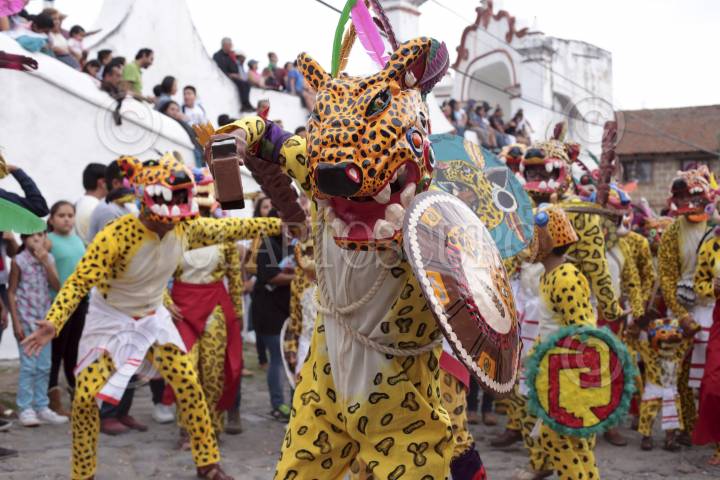 CUERNAVACA, MORELOS, 18DEAGOSTO2013.- Esta tarde se anunció el próximo festival de truque de Zacualpan de Amilpas, en el que participarán coloridas comparsas de danzantes conocidos como "mojigangas", quienes elaboran sus atuendos principalmente con máscaras de papel maché. La festividad, representa una tradición prehispánica del comercio de la localidad, se llevará a cabo del 29 de septiembre al 5 de octubre. FOTO: BERENICE FREGOSO / CUARTOSCURO.COM