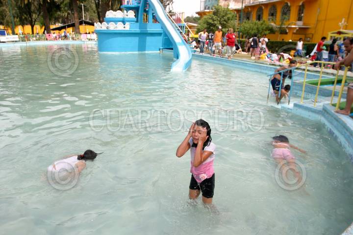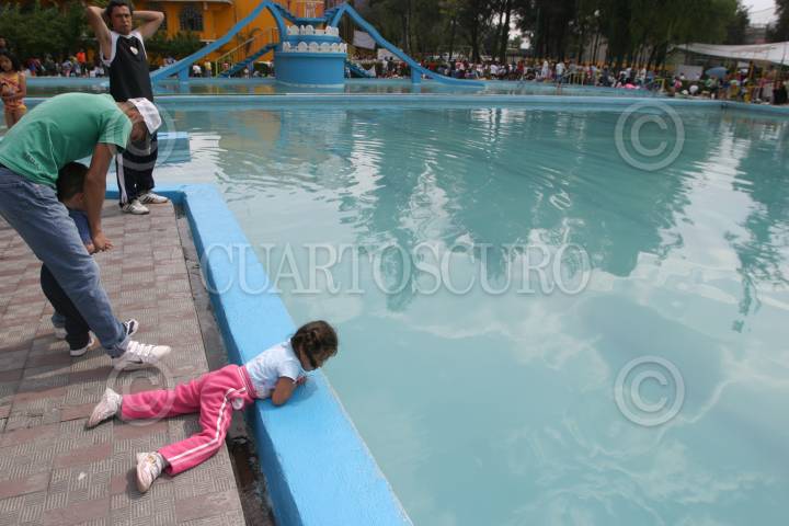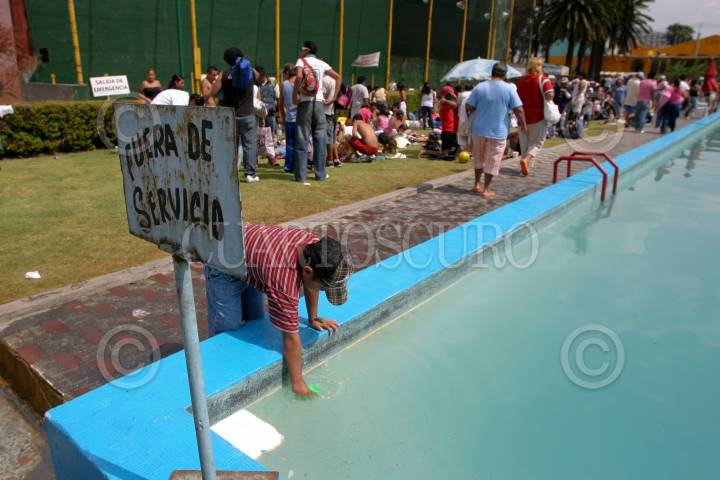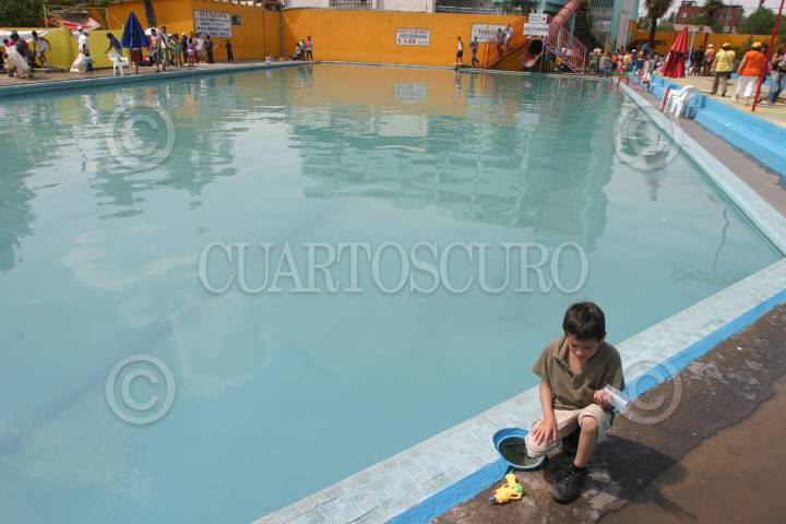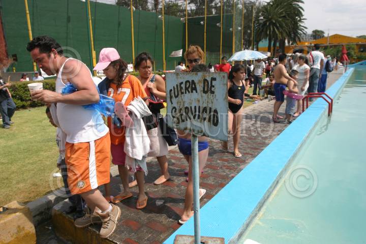 MÉXICO, D.F., 03ABRIL2010.- En punto de las 14:15 las autoridades capitalinas sacaron de las piscinas de la playa artificial del Deportivo 14 de Diciembre, a las personas que se encontraban en ellas, pues señalaron los afectados en el agua había heces fecales. Al cuestionar a las encargados sobre este asunto, reportaron que efectivamente los habían sacado de las albercas pero no una sino dos veces para que el agua recibiera el tratado a base de cloro y media horas después se les permitió reingresar. Sin embargo, debido a que les iban a dar mantenimiento general terminaron de dar servicio una hora antes del horario de cierre y afirmaron que mañana continuarían con el funcionamiento normal. Para muchos de los vacacionistas fue injusto que no cumplieran con el horario por que habían tenido que esperar por horas para accesar y cundo ya estaban adentro no los dejaron usar las albercas. FOTO: MOISÉS PABLO/CUARTOSCURO.COM