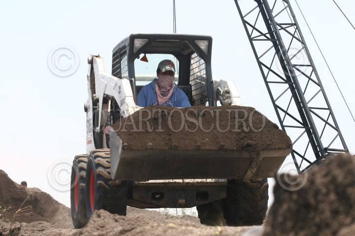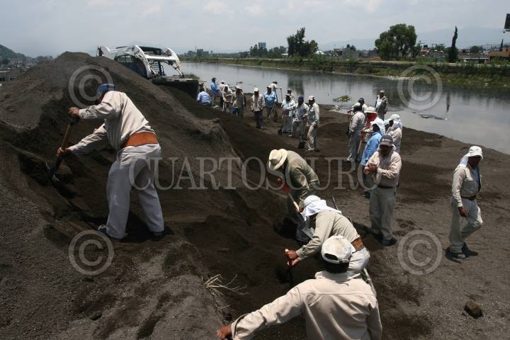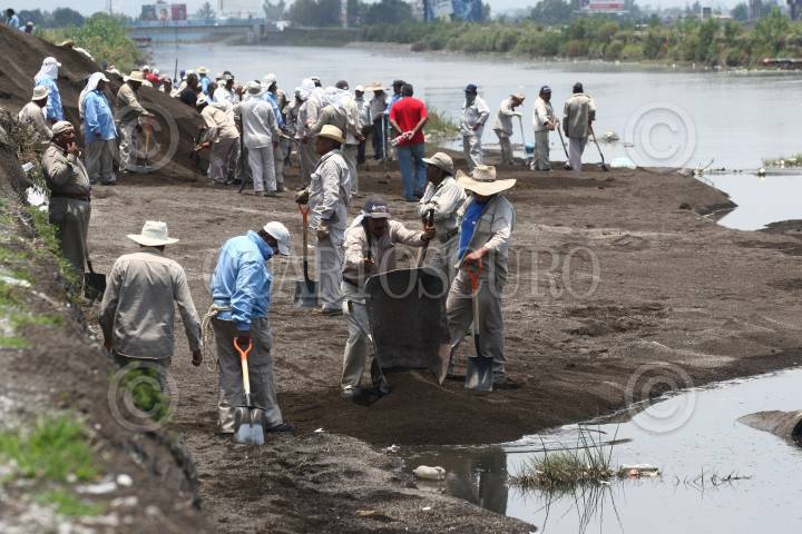 VALLE DE CHALCO, ESTADO DE MÉXICO., 07JULIO2009.- Trabajadores de CONAGUA, refuerzan el Canal de la Compañía con arena debido a los constantes agrietamientos que se han registrado en la colonia el Molino. FOTO: SAÚL LÓPEZ/CUARTOSCURO.COM