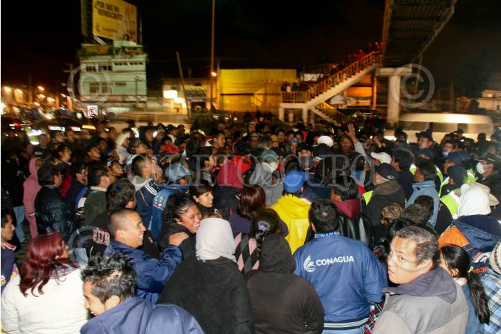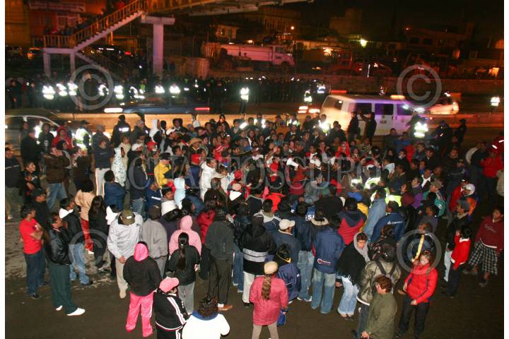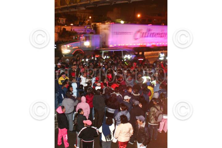 IXTAPALUCA, ESTADO DE MÉXICO, 18FEBRERO2010.- Por segundo dia consecutivo, más de200 habitantes de la colonia El Molino de Ixtapaluca, se manifestaron bloqueando la autopista México-Puebla en el kilómetro 27, exigiendo sean selladas las filtraciones de agua que sufre el canal de la compañía en su colonia. FOTO: SAÚL LÓPEZ/CUARTOSCURO.COM
