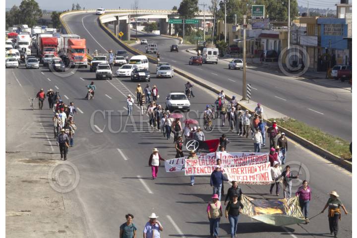 TEXCOCO, ESTADO DE MÉXCO, 29AGOSTO2013.- Integrantes del Frente de Pueblos en Defensa de la Tierra de San Salvador Atenco realizan una marcha desde el centro de Atenco hacia el penal Molino de Flores en Texcoco, para exigir la libertad de Rosa María Medina Moreno, acusada por el robo de un vehículo (ambulancia) en los hechos ocurridos del 3 y 4 de mayo del 2006. FOTO: CARLOS MARURI /CUARTOSCURO.COM