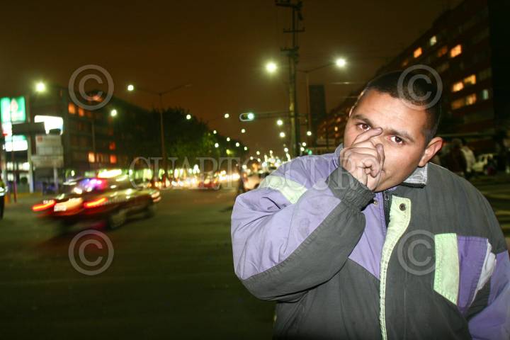 MÉXICO, D.F., 22ENERO2010.- Enrique Soto de 23 años, es uno de los centenares de jóvenes que viven en situación de calle, se gana la vida limpiando parabrisas, automóviles y pidiendo dinero a personas. Enrique comentó que tiene 13 años viviendo en las inmediaciones del metro Chapultepec, La Raza e Hidalgo, es originario de Tultitlan, Estado de México y su mayor pasatiempo es platicar, caminar por la ciudad, contar historias de su ex-familia e inhalar solvente limpia parabrisas mejor conocido como "Mona". FOTO: SAÚL LÓPEZ/CUARTOSCURO.COM