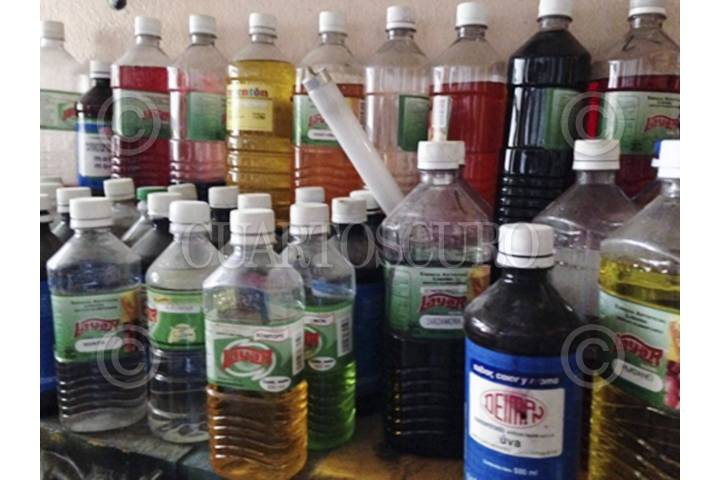 MÉXICO, D.F., 19AGOSTO2015.- Derivado del hallazgo de menores de edad deambulando intoxicados por andenes del Metro, la Procuraduría General de Justicia del Distrito Federal solicitó y cumplimentó orden de cateo en dos inmuebles donde se comercializaban, entre niños y jóvenes, botellas conocidas como "mamilas", elaboradas con solvente. En la acción fueron detenidas siete personas en posesión de mil envases preparados con inhalantes, saborizantes y esencia. FOTO: ARMANDO MONROY /CUARTOSCURO.COM