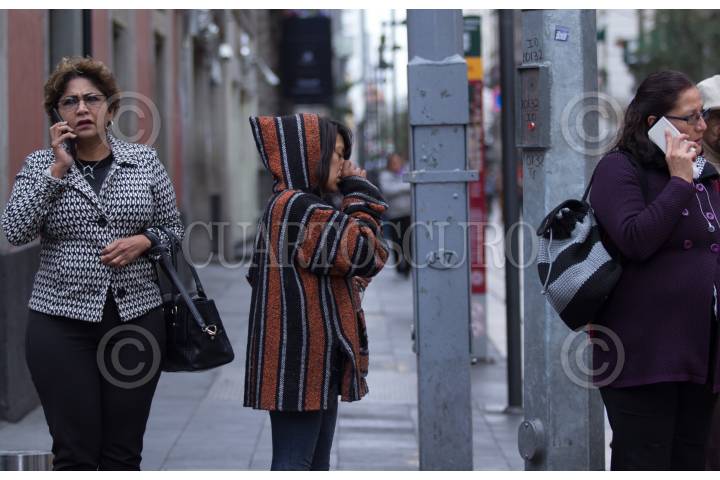 CIUDAD DE MÉXICO, 29ENERO2018.- Una mujer inhala un poco de solvente sobre la calle Madero del Centro Histórico, a su alrededor dos mujeres sin inmutarse del acto hablan por teléfono. FOTO: GALO CAÑAS /CUARTOSCURO.COM