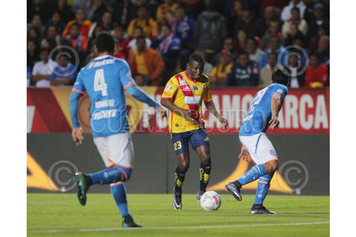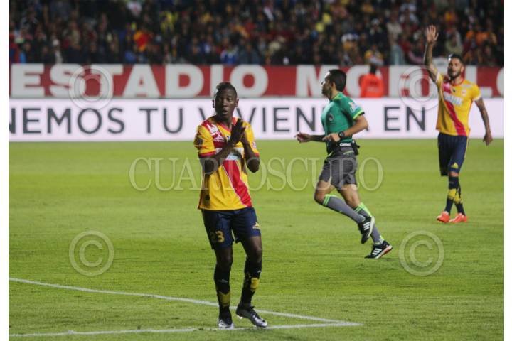 MORELIA, MICHOACÁN, 10ENERO2016.- Monarcas Morelia, empató 2-2 la noche del sábado ante Cruz Azul, en el Estadio Morelos. El equipo regresó al partido, después de que el equipo capitalino se adelantó en el marcador con la pena máxima, con gol del "Chaco" Giménez. Luis Gabriel Rey, jugador que se presentó cómo nuevo refuerzo, anotó el gol del empate que salvó el partido. FOTO: ALAN ORTEGA /CUARTOSCURO.COM