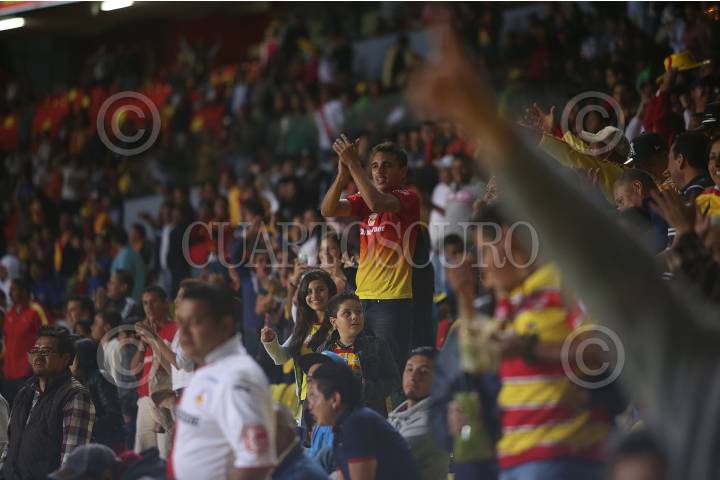 MORELIA, MICHOACÁN, 27FEBRERO2015.- Monarcas Morelia logró hoy su primer triunfo del torneo Clausura del fútbol mexicano al ganar como local por 3-2 a Jaguares de Chiapas en el inicio de la octava jornada donde Roberto Hernández debutó como director técnico del equipo triunfador. Cerca del final, Monarcas Morelia logró el anhelado triunfo por la vía del tiro penal que convirtió Carlos Adrián Morales a los 84 minutos.. FOTO: CUARTOSCURO.COM