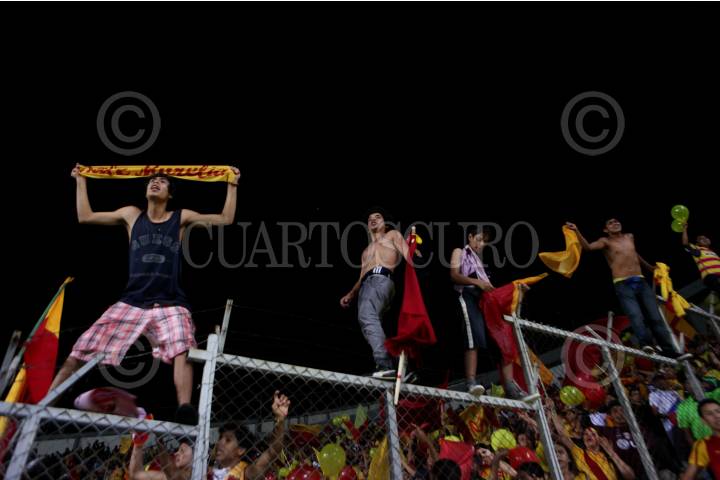 MORELIA, MICHOACÁN, 01JULIO2015.- Monarcas Morelia consiguió el triunfo ante Tigres con gol de cabeza de Armando Zamorano en el mimuto 73 del segundo tiempo. En la imagen miembros de la barra Locura 81 celebran el triunfo. FOTO: ALAN ORTEGA /CUARTOSCURO.COM