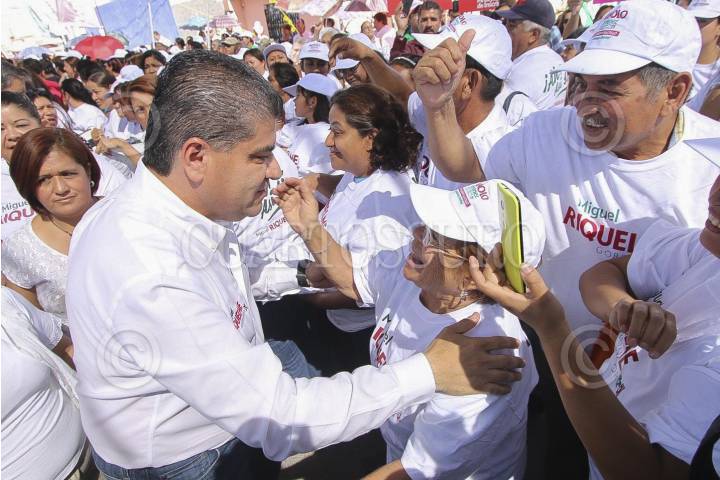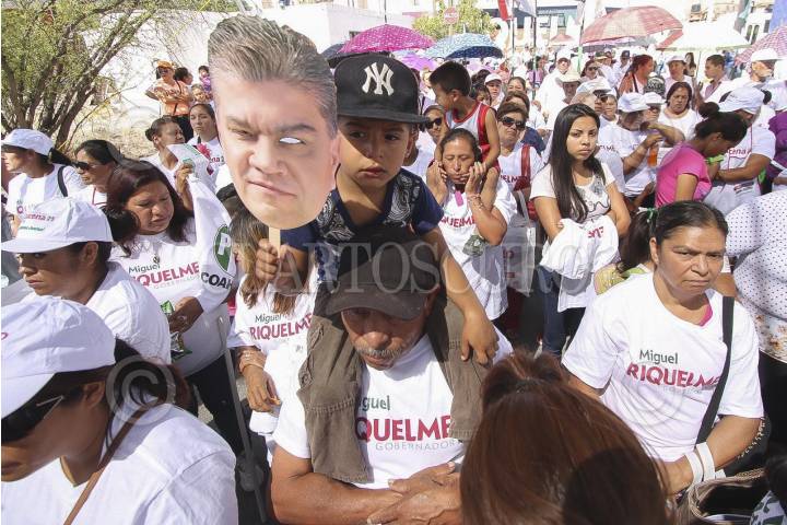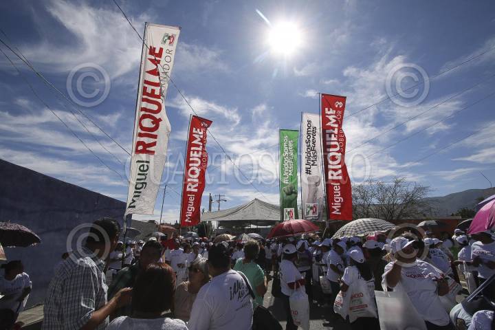 SALTILLO, COAHUILA 19MAYO2017.- Miguel Ángel Riquelme Solís, candidato a la gubernatura de Coahuila por el PRI, firmó un compromiso social "monedero rosa" que, según él, beneficiará a madres solteras, personas con discapacidad, de la tercera edad y abuelos que tengan a cargo a sus nietos. Decenas de personas asistieron al mitin que se llevó a cabo en la colonia "Pueblo Insurgente". FOTO: VENUSTIANO MADERO /CUARTOSCURO.COM