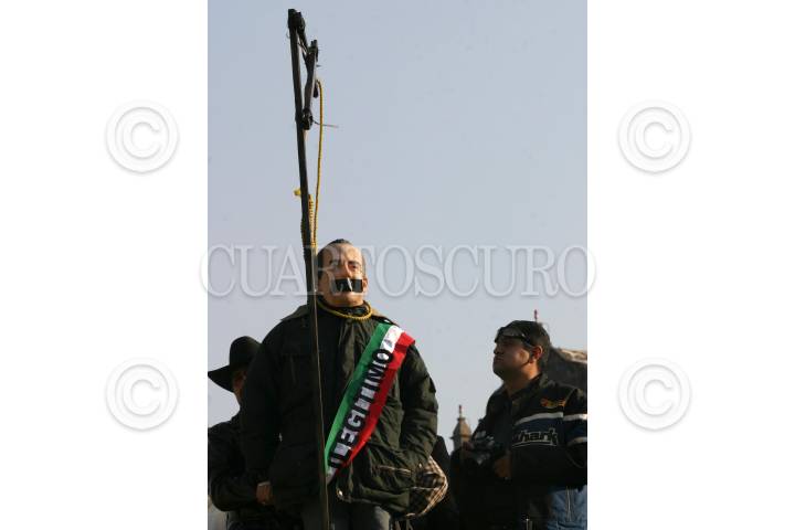 MÉXICO, D.F., 01DICIEMBRE2006.- Un monigote parodiando a Felipe Calderón, Presidente de la República, durante un mitín en el Zocalo de los integrantes del Frente Amplio Progresista, encabezados por Andrés Manuel López Obrador, llamado presidente legítimo. FOTO: MOISÉS PABLO/CUARTOSCURO.COM