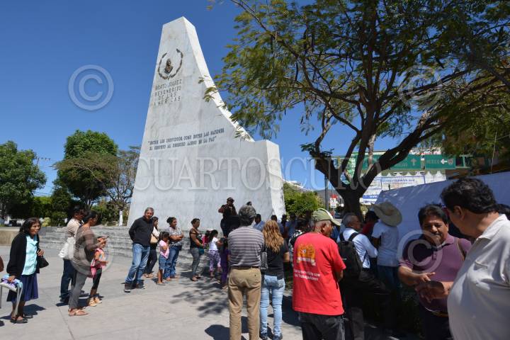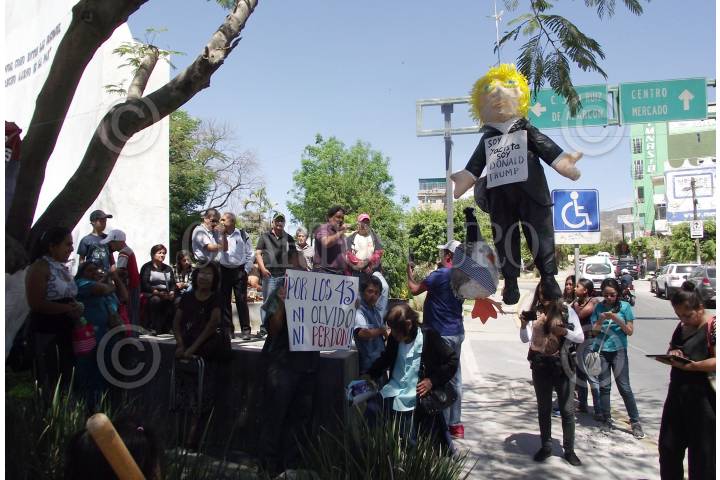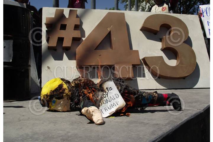 CHILPANCINGO, GUERRERO, 26FEBRERO2017.- Integrantes de la Dirección Colectiva de Organizaciones Sociales, Estudiantiles y Sindicatos del Estado de Guerrero se manifestaron en el monumento de Banderas, ubicado en la avenida Lázaro Cárdenas, para exigir la presentación con vida de los 43 normalistas de Ayotzinapa, desparecidos en Iguala, además en el Anti Monumento quemaron un monigote del presidente de Estados Unidos Donald Trump. FOTO: JOSÉ I. HERNÁNDEZ /CUARTOSCURO.COM