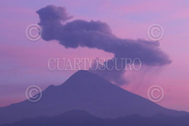 El volcán Popocatépetl emite a las 07:41 horas de la mañana una columna de ceniza de más de 3 km sobre su cráter, imagen tomada desde Tecajec, municipio de Yecapixtla.