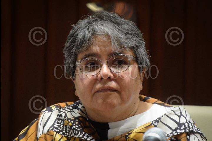 Marina Robles, secretaria del Medio Ambiente de la Ciudad de México, durante la inauguración de la Estación de Monitoreo de Calidad del Aire ubicada al interior de la Secundaria Técnica No. 36, en el marco del Día Interamericano de la Calidad del Aire.
