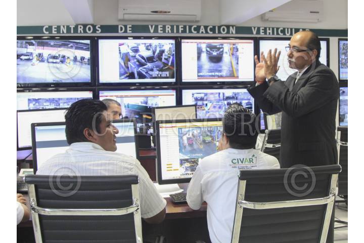 MÉXICO, DF, 14NOVIEMBRE2013.- Inicia operaciones el Centro de Inspección y Vigilancia Ambiental Remota (CIVAR) ubicado en las instalaciones de la Secretaria del Medio Ambiente del Distrito Federal, dicho centro de monitoreo servirá para verificar en tiempo real la operación de los 81 verificentros que se encuentran en la Ciudad de México. FOTO: SAÚL LÓPEZ / CUARTOSCURO.COM