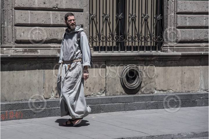 CIUDAD DE MÉXICO, 26MARZO2019.- Un monje camina sobre la calle de Donceles en el Centro Histórico. FOTO: MARIO JASSO /CUARTOSCURO.COM