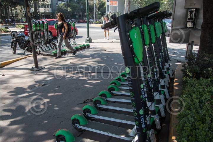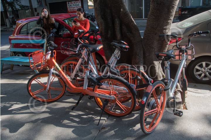 CIUDAD DE MÉXICO, 01FEBRERO2019.- Bicicletas sin Anclaje y Patines eléctricos son muy utilizados en colonias céntricas de la ciudad, como Nápoles, Roma y Condesa, sin embargo, estos nuevos medios de transporte de renta no están regulados y los usuario en ocasiones no los utilizan de forma responsable y respetando el reglamento de vialidad. FOTO: ISAAC ESQUIVEL /CUARTOSCURO.COM