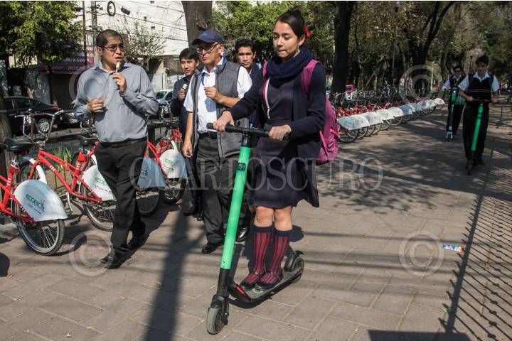 CIUDAD DE MÉXICO, 15FEBRERO2019.- Seis empresas operarán el servicio de bicicletas sin anclaje y monopatines en la Ciudad de México, durante los próximos 45 días. Autoridades capitalinas aseguraron que mil 500 monopatines y 3 mil 300 bicicletas sin anclaje funcionarán en las alcaldías Benito Juárez, Miguel Hidalgo y Cuauhtémoc. FOTO: ISAAC ESQUIVEL /CUARTOSCURO.COM