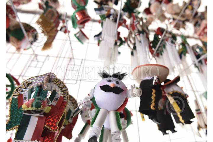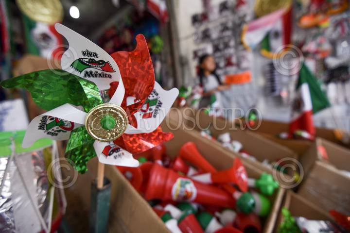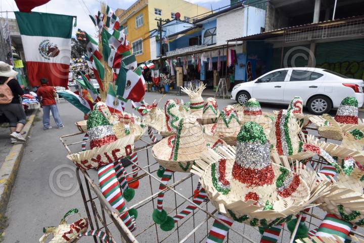 TOLUCA, ESTADO DE MÉXICO, 11SEPTIEMBRE2019.- La delegación Benito de San Cristobal Huichochitlán se caracteriza por la venta de artículos para la celebración de las fiestas patrias, como los tradicionales sombreros de palma, banderas, moños, bigotes, trajes típicos entre otras cosas; a este lugar llegan varios comerciantes para poderse surtir y revender en otros puntos de la entidad mexiquense. FOTO: CRISANTA ESPINOSA AGUILAR /CUARTOSCURO.COM