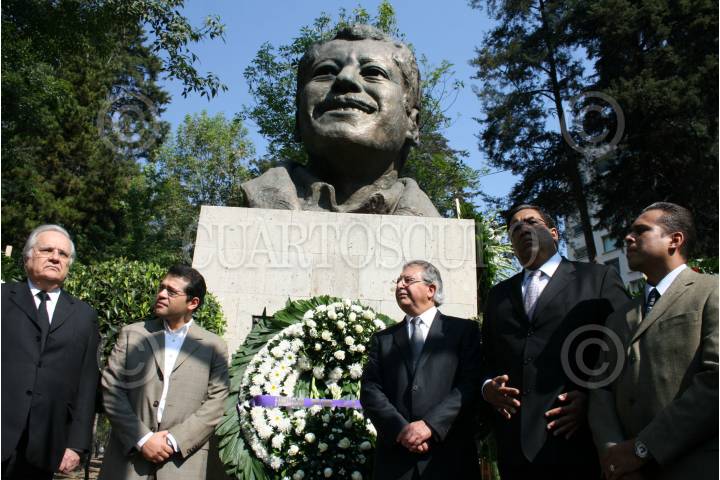 MÉXICO, D.F., 23MARZO2008.-Integrantes del Partido Revolucionario Institucional montaron una guardia de honor para conmemorar el 14 años de la muerte de Luis Donaldo Colosio, la guardia estubó encabezada por Fransisco Rojas, en uno de sus bustos ubicado en Paseo de Reforma. FOTO:RICARDO CASTELAN/CUARTOSCURO.COM.