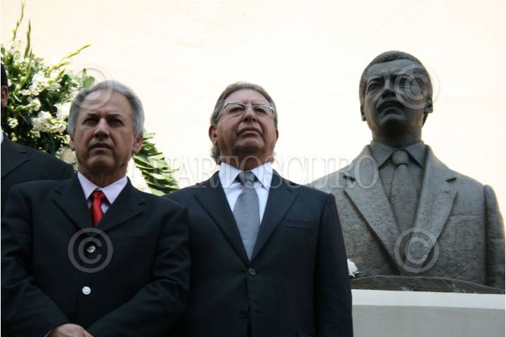 GUADALAJARA, JALISCO, 07FEBRERO2010.- Emilio Gonzalez Marquez, Gobernador de Jalisco junto a Alberto Cardenas Jimenez, diputado por el PAN y Cesar Nava, Presidente nacional del PAN, durante la guardia de honor que montaron en la rotonda de los Jaliscienses Ilustres donde depositaron los restos del catedrático y humanista, Rafael Preciado Hernández. FOTO: CUARTOSCURO.COM
