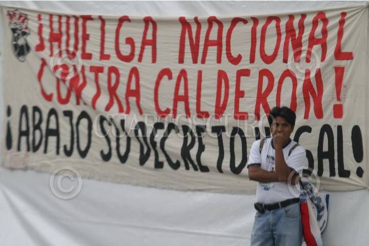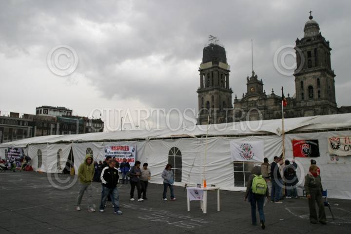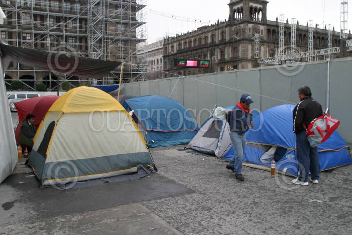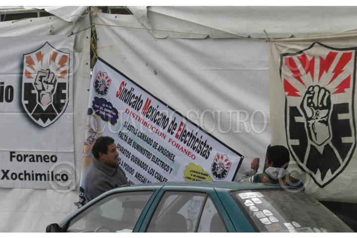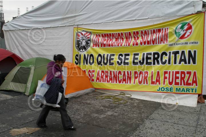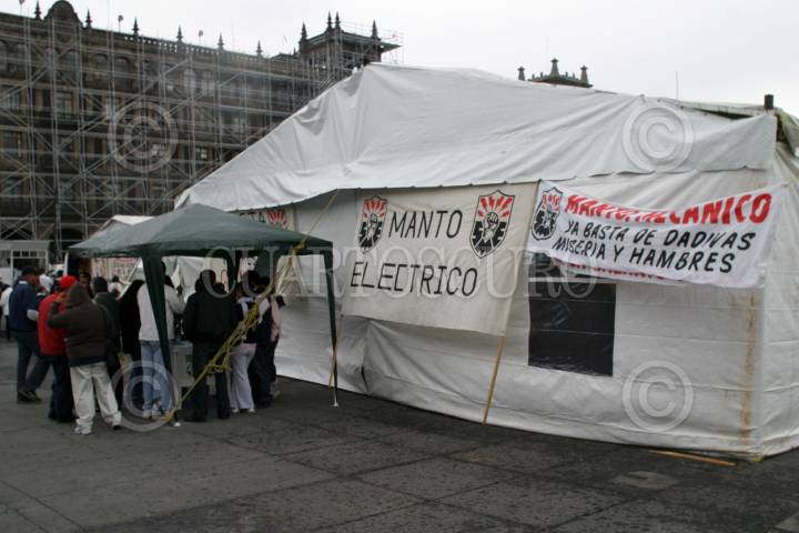 MÉXICO, D.F., 30ENERO2010.- Desde la noche de ayer integrantes del Sindicato Mexicano de Electricistas (SME) y de la extinta Luz y Fuerza del Centro (LyFC) montaron un plantón permanente en la plancha del Zócalo hasta tener respuesta por parte del gobierno federal en torno a las demandas obrero-campesinas. FOTO: RODOLFO ANGULO/CUARTOSCURO.COM